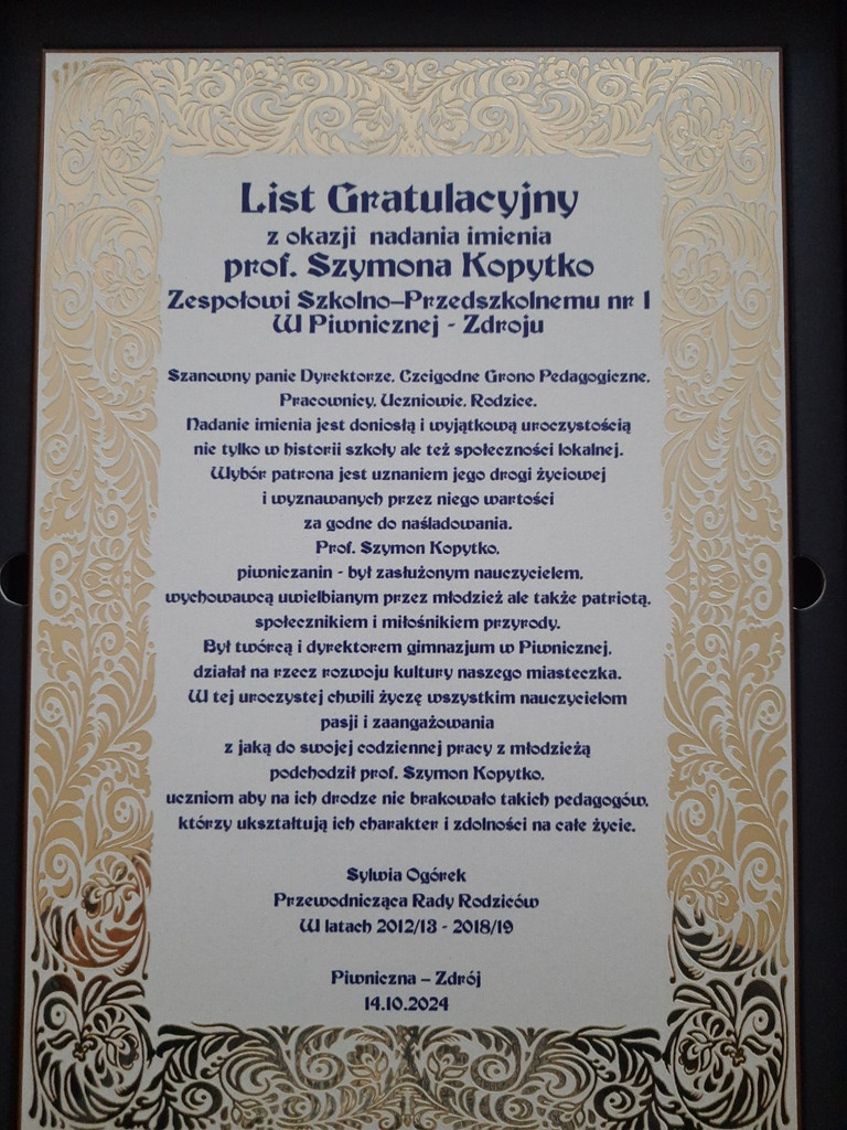 Patron Szkoły Podstawowej nr 1 w Piwnicznej-Zdroju